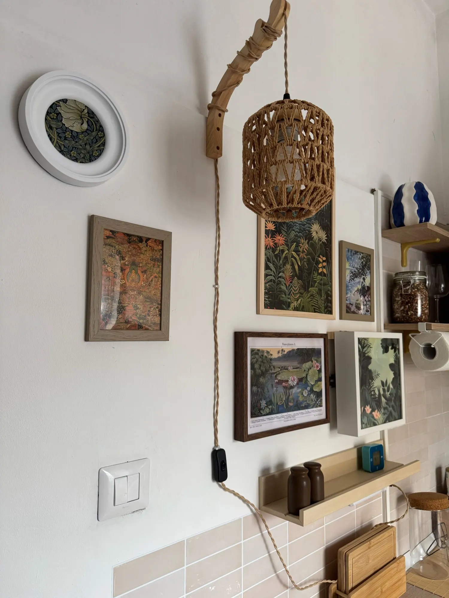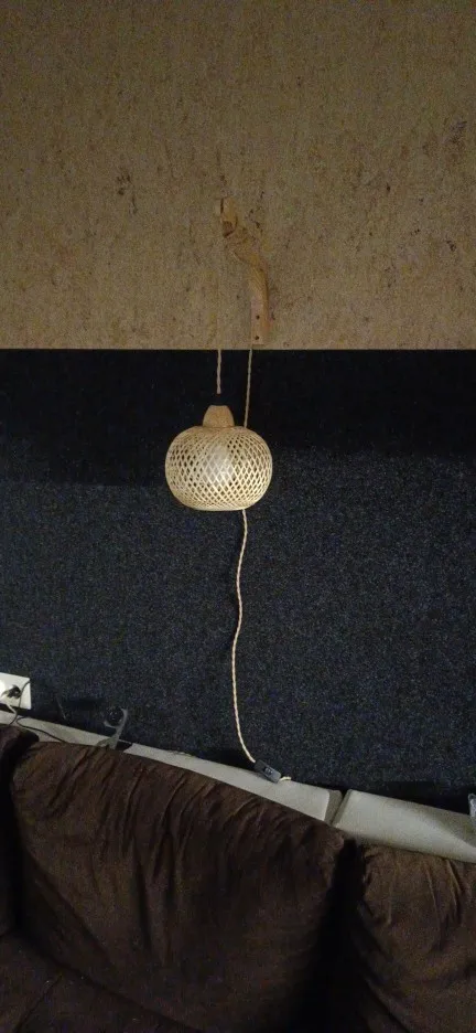 The lamp is very beautiful and made with high quality. The base is made of natural wood, processed and coated with varnish. The lamp's weave is even and neat without protruding elements. The fabric cord is of a pleasant color. The price-quality ratio is excellent! Very satisfied with the purchase!